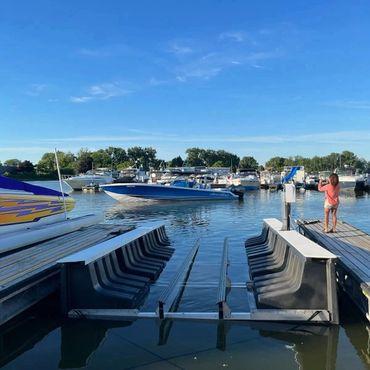 These lifts can be adapted at any time to fit a larger and/or smaller boat if desired. The Free-Floating lift is well-suited and can be placed on a stationary or floating dock system. This lift will effortlessly fit into a double slip, L or U-shaped slip and, most any square dock configuration.